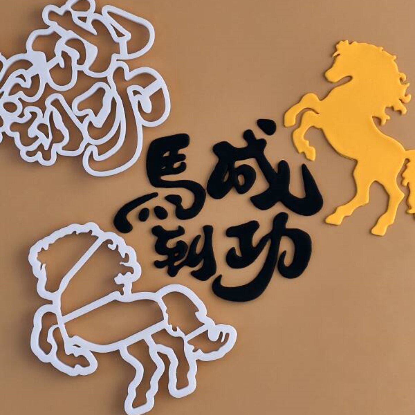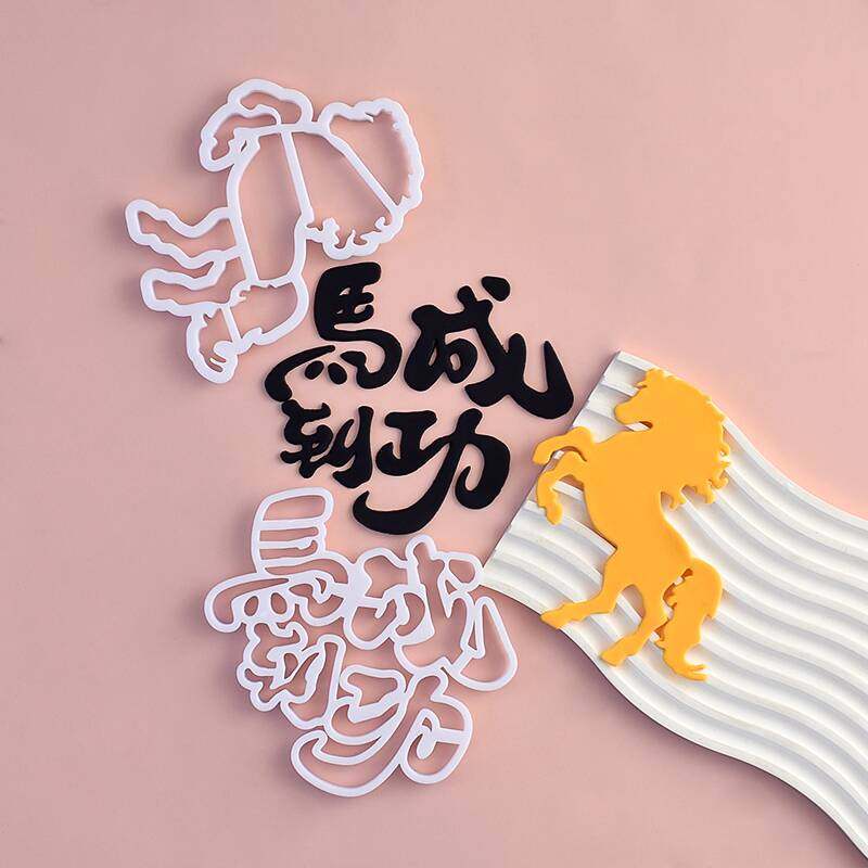 淘宝新款马到成功翻糖切模网红男士老板生日蛋糕装饰压模烘焙模具配件