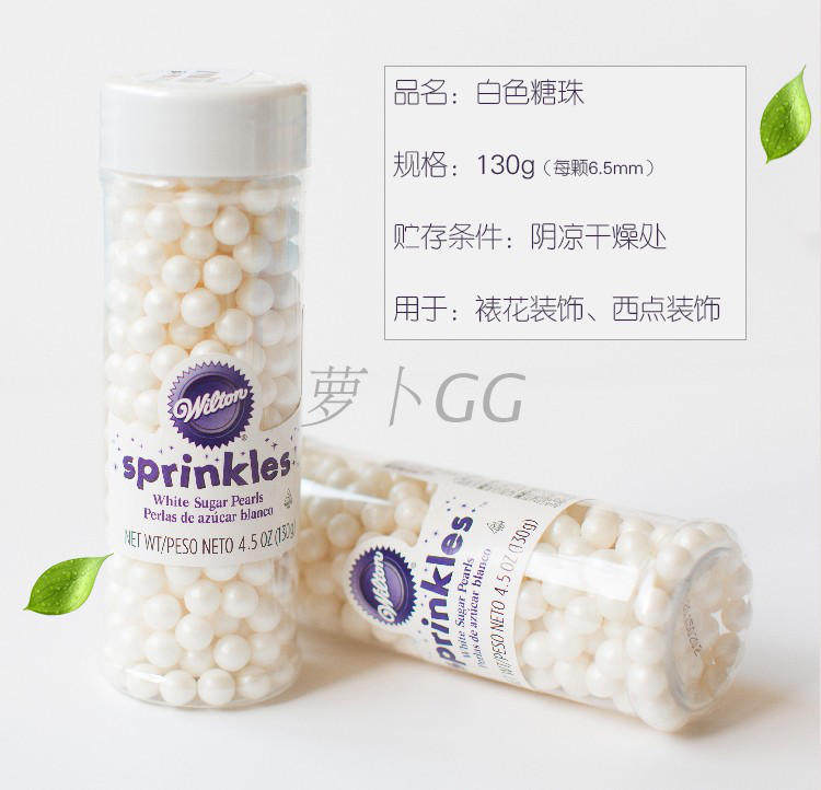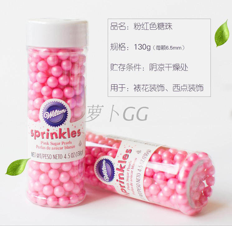淘FC糖珠蛋糕装饰珍珠糖粒白色金珠可食用生日烘焙彩色圣诞糖针糖豆