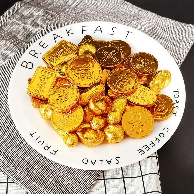 淘金币花生金条元宝巧克力散装500g生日蛋糕装饰烘焙结婚庆典喜糖果