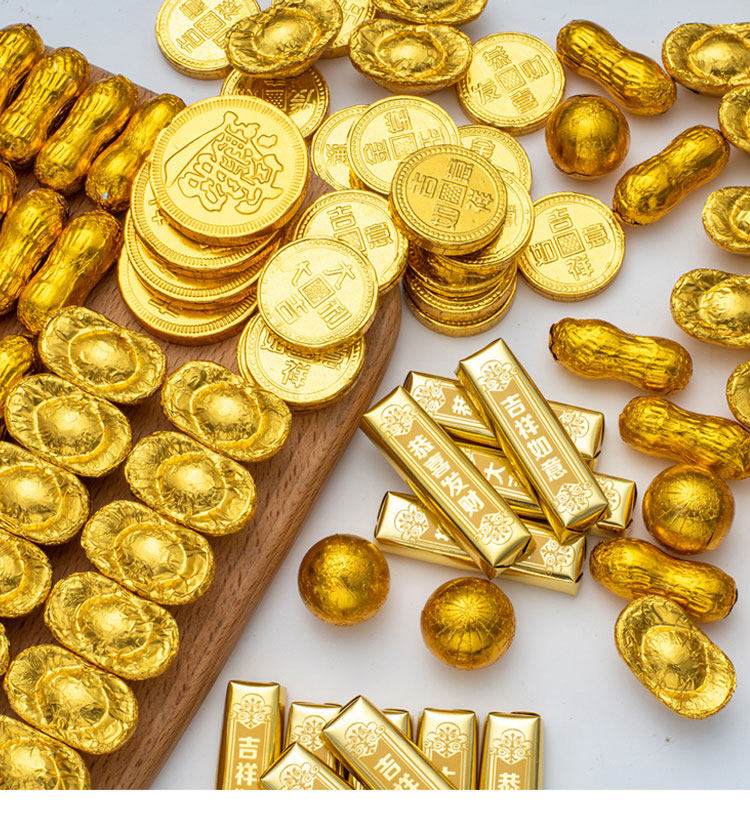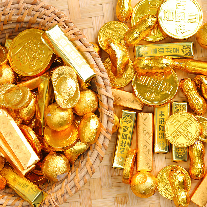 淘金币代可可脂巧克力蛋糕装饰元宝花生金条祝寿婚庆喜糖烘焙摆件