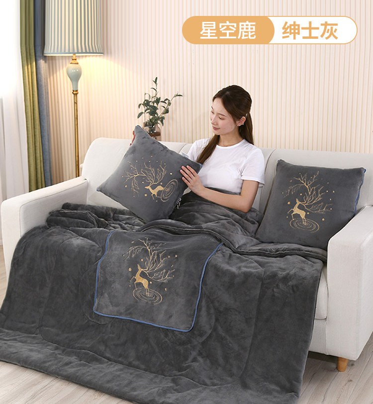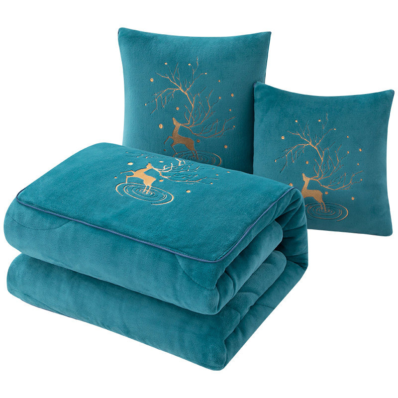 超厚牛奶绒抱枕被子两用二合一车载靠垫枕头办公室沙发折叠午睡被