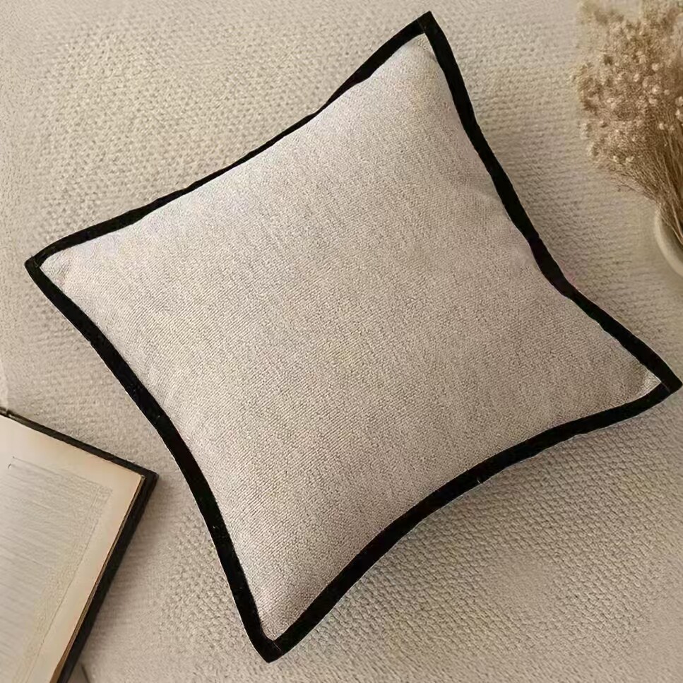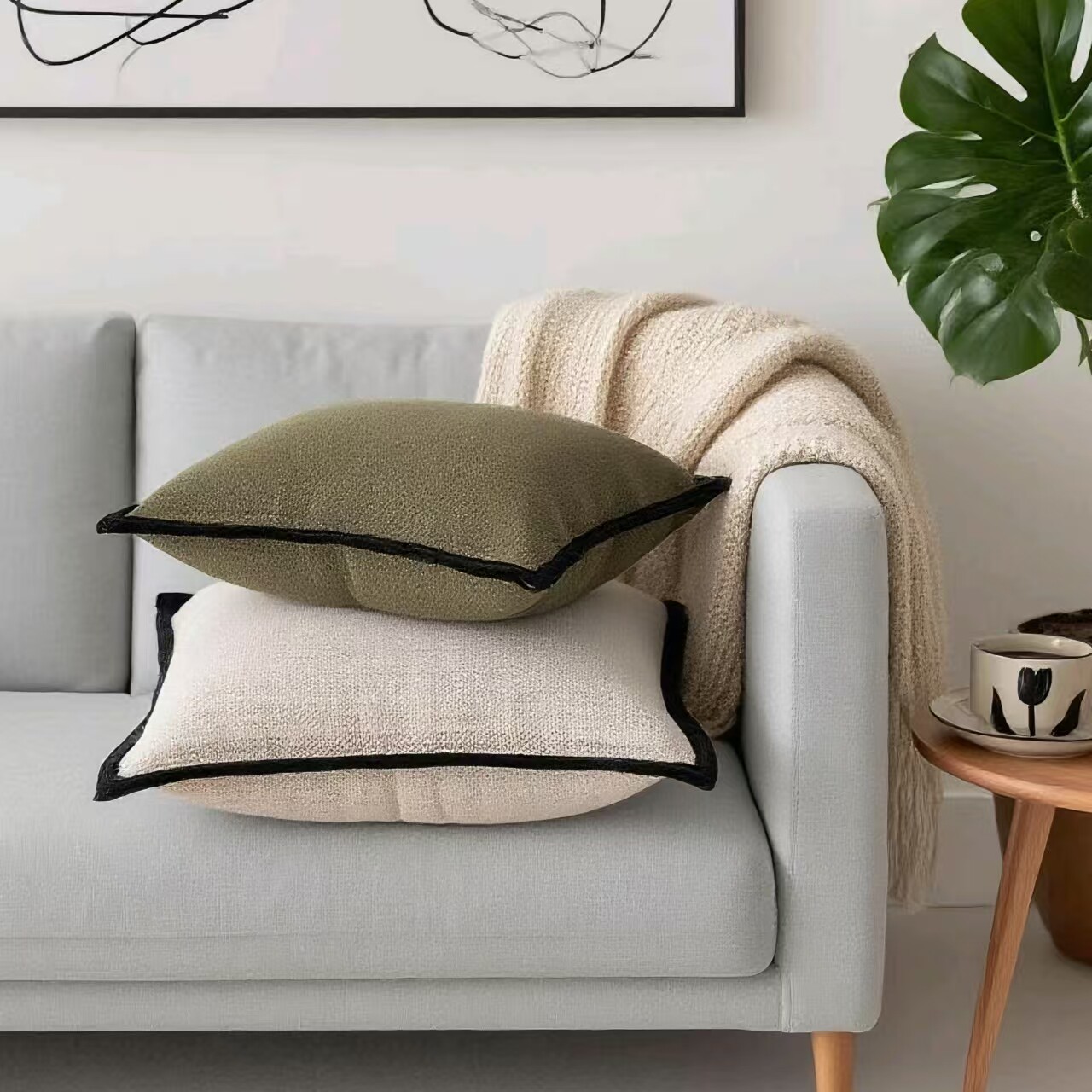 法式中古风抱枕 燕麦奶茶色黑边复古绿南洋美式风客厅沙发腰靠枕