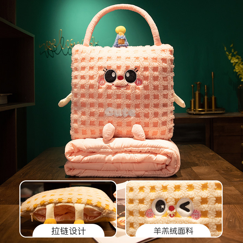 库洛米加厚牛奶绒抱枕被子两用二合一午睡车用毯子冬天车载枕头被