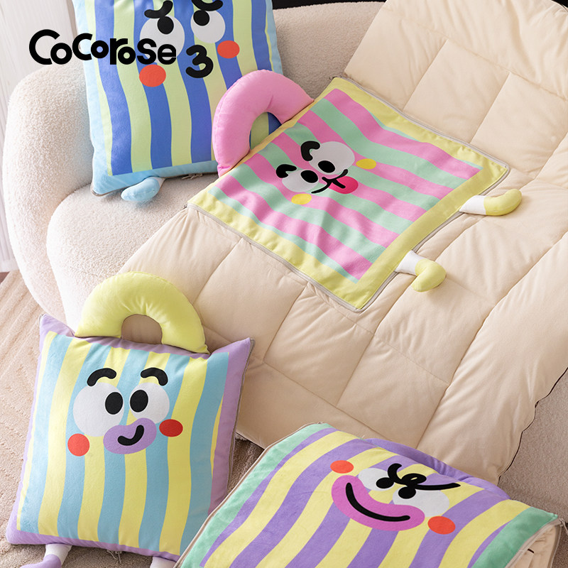天猫小怪兽彩色多巴胺卡通条纹抱枕被子二合一两用高级车载车用午睡毯