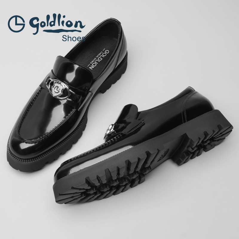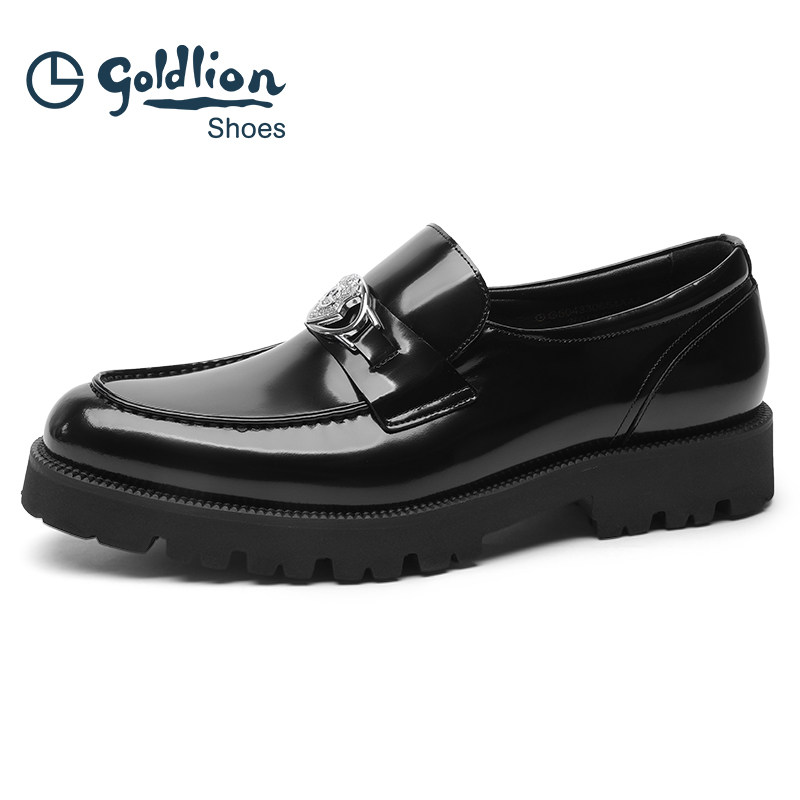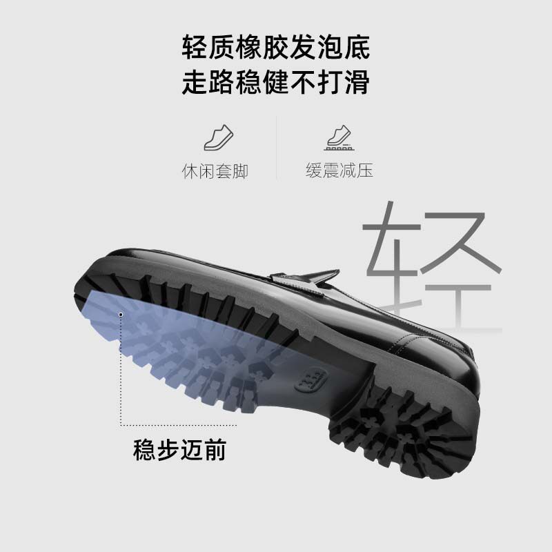 天猫金利来男鞋 秋季新款商务休闲套脚亮面皮鞋一脚蹬耐磨办公乐福鞋