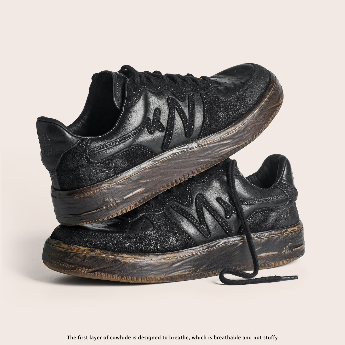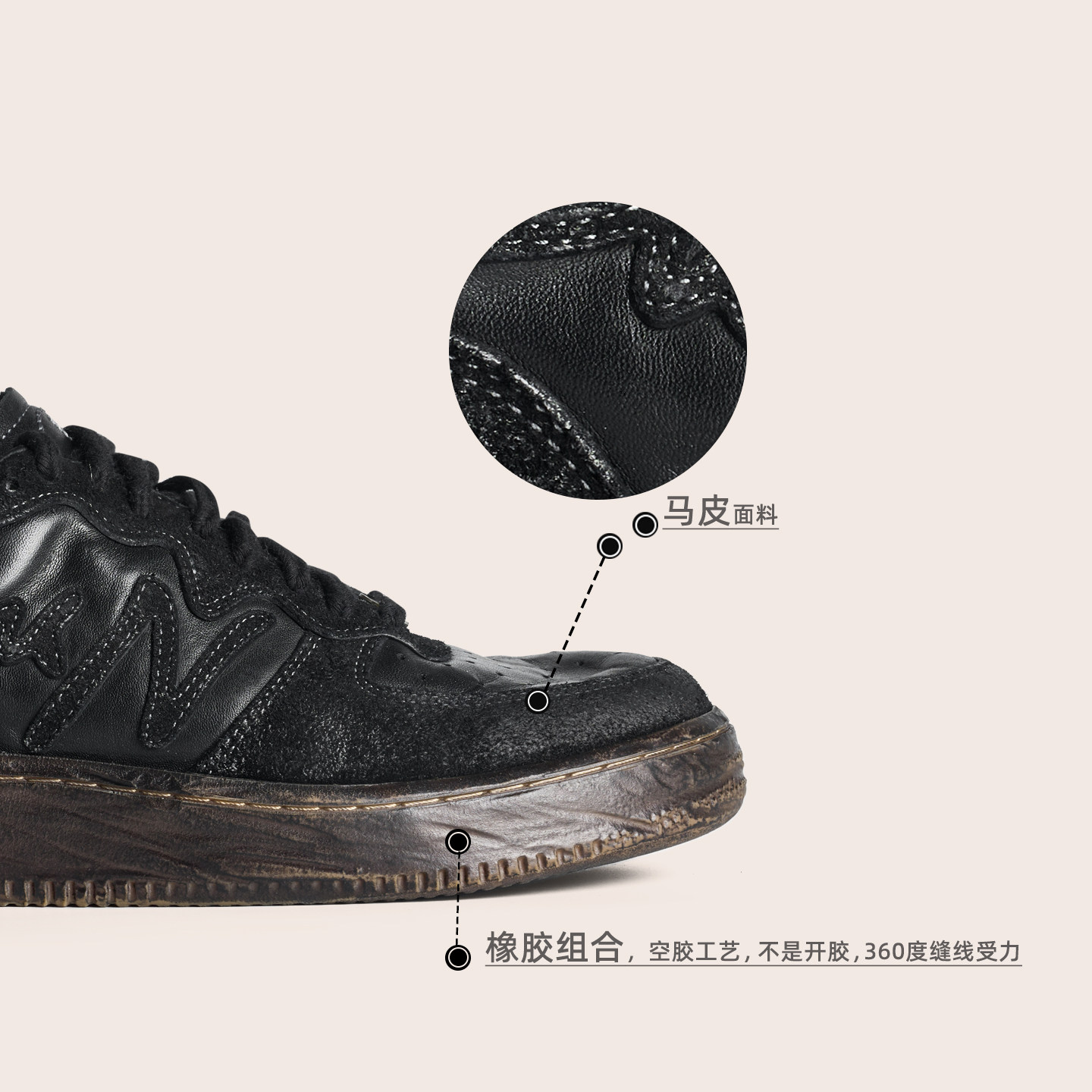 淘宝PIPG男女款马皮复古休闲运动板鞋 百搭小众原创设计手工黑色皮鞋