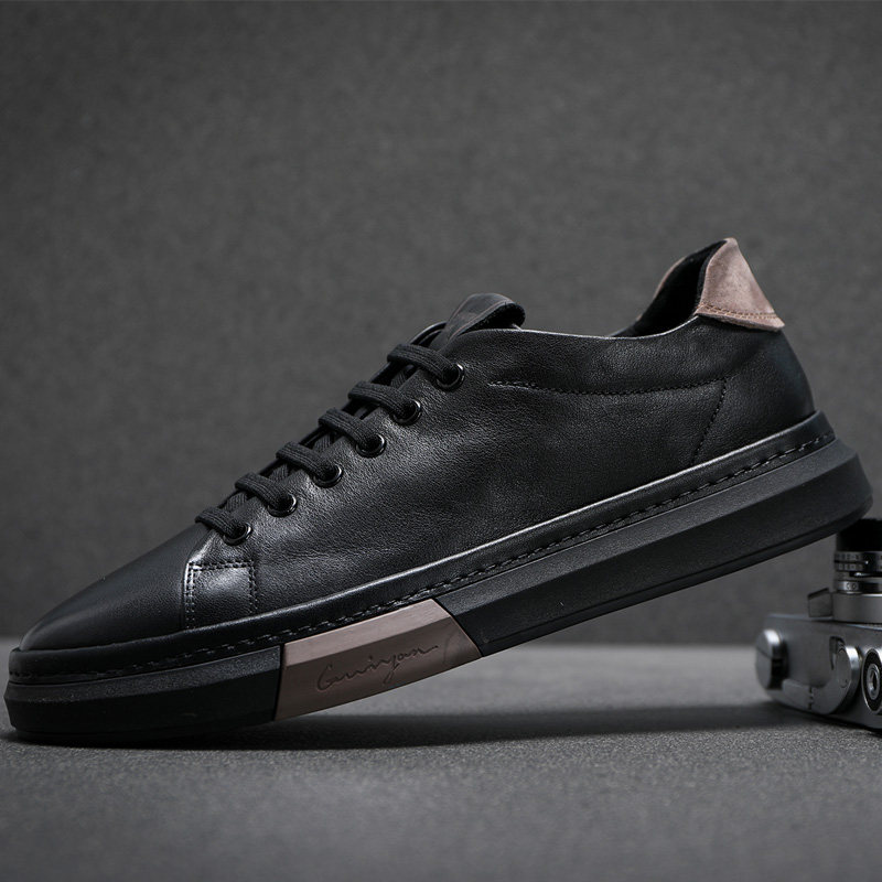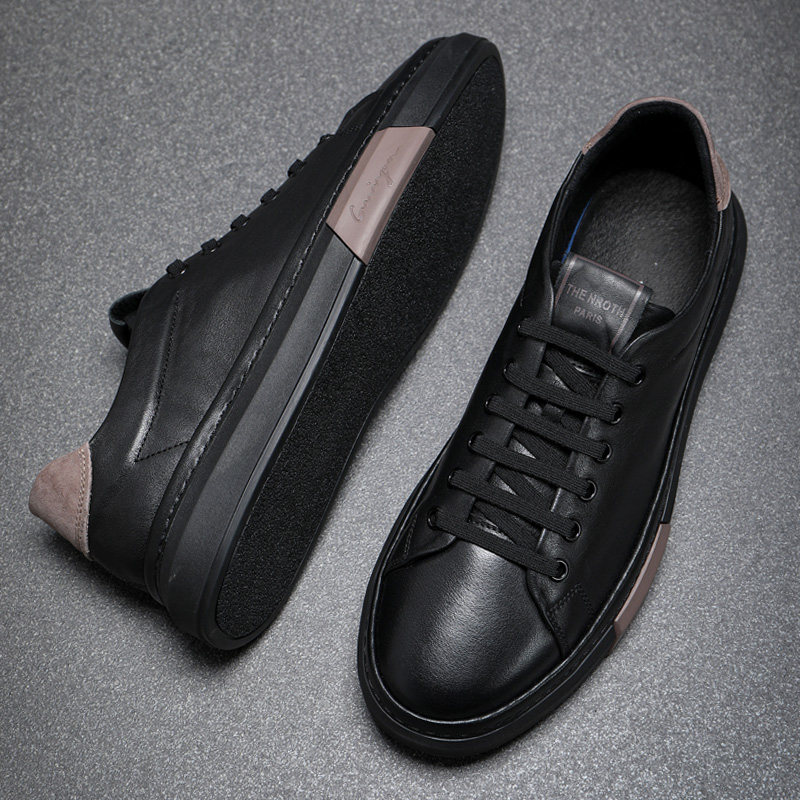 欧洲站真皮男鞋2025秋季头层牛皮鞋子男休闲皮鞋潮流小黑鞋男板鞋
