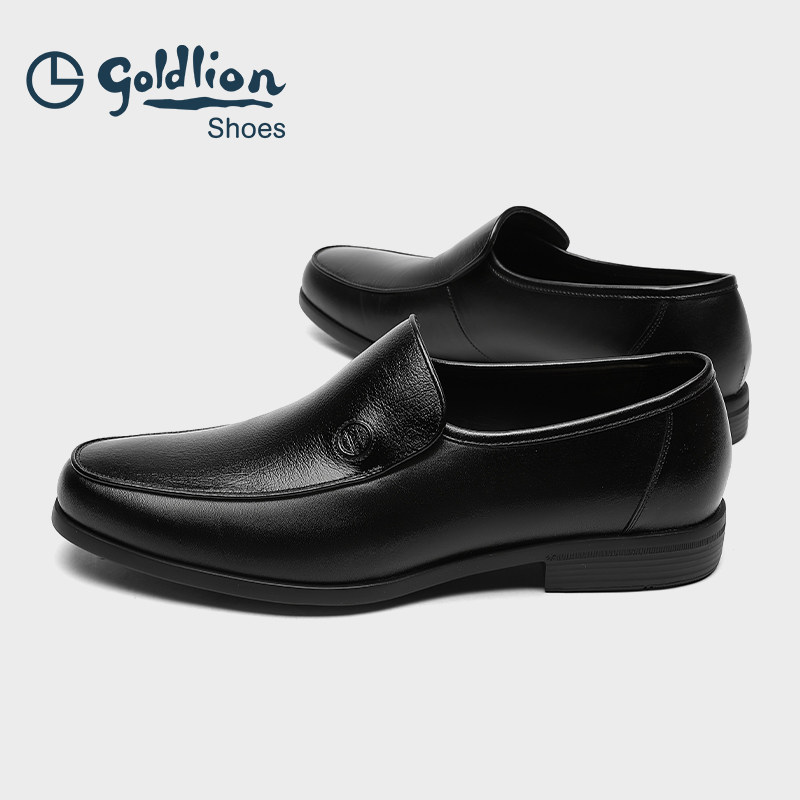 金利来男鞋 秋季新款商务休闲套脚亮面皮鞋一脚蹬耐磨办公乐福鞋