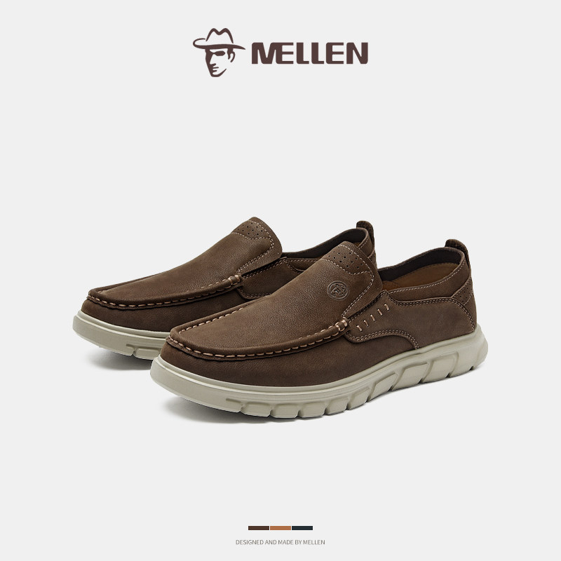 天猫MELLEN名郎男鞋新款舒适透气一脚蹬乐福鞋通勤百搭休闲皮鞋男厚底