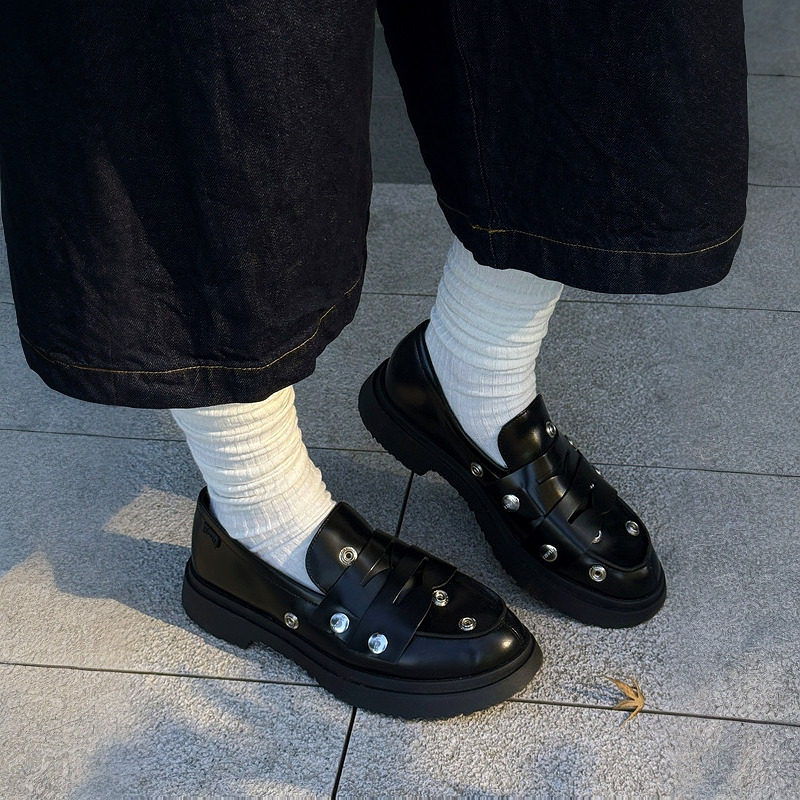 天猫Camper看步男鞋Walden乐福鞋一脚蹬黑色真皮皮鞋朋克风时尚单鞋