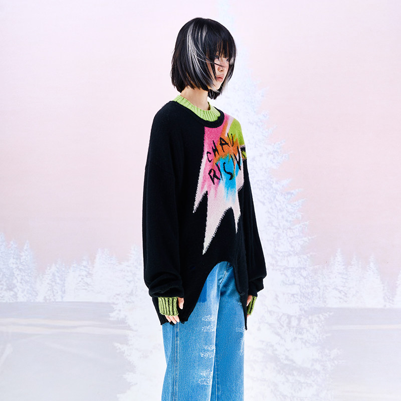 天猫洲升/CHAU.RISING火焰保暖宽松女针织羊绒衫毛衣秋冬新品设计师