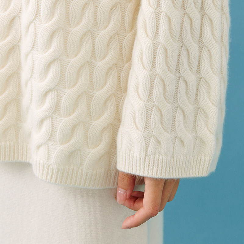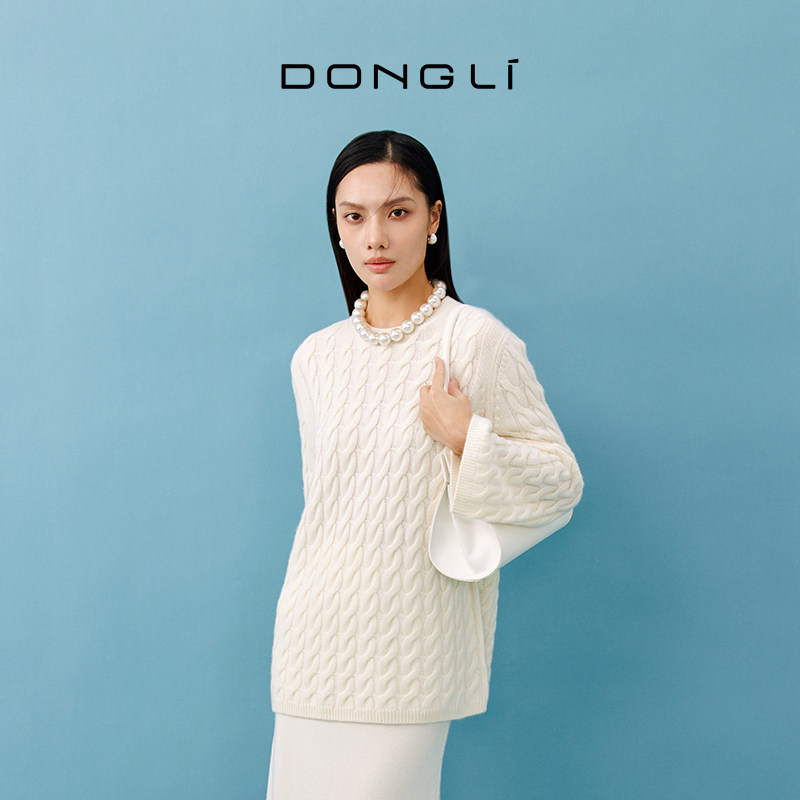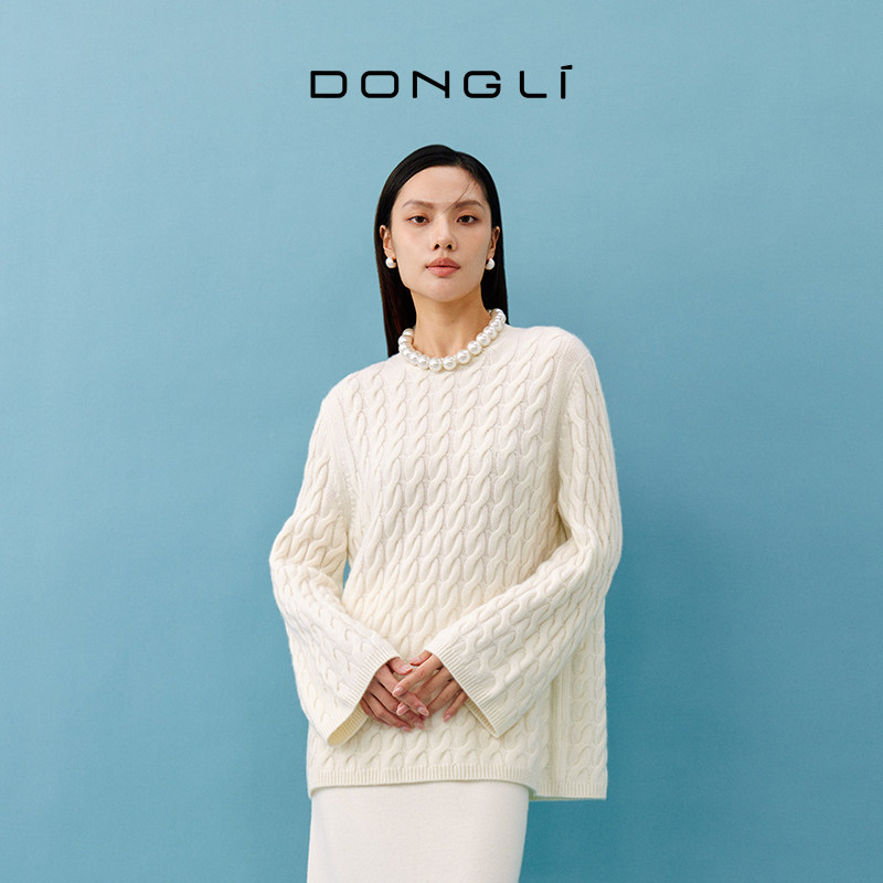 天猫东黎 山羊绒 秀场联名款-秋冬风尚 女士绞花针织套衫宽松时尚4255