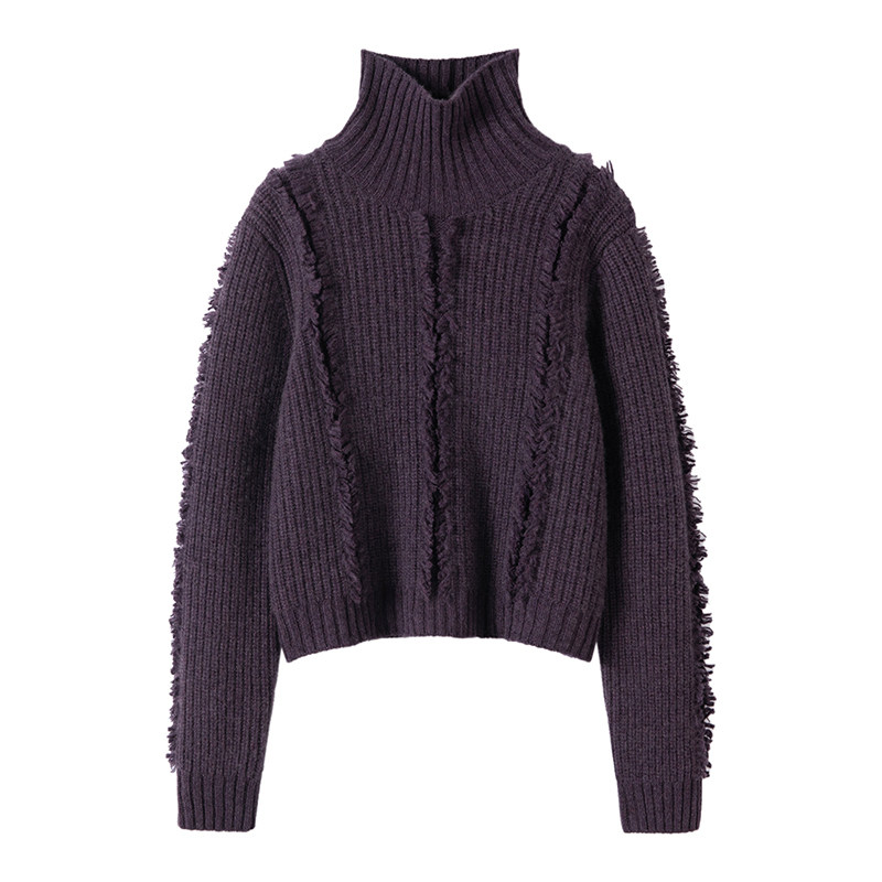 天猫气场到位了!流苏拉毛截短上衣100%纯山羊绒针织衫女2025秋冬新款