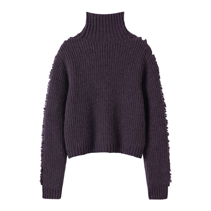 淘气质杠杠的~单侧露肩高领羊绒衫女纯羊绒毛衣针织打底衫秋冬新款