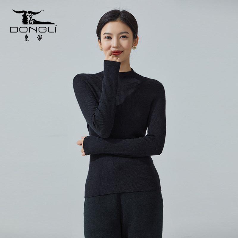 100%纯羊毛半高领针织衫女秋冬长袖紧身内搭中领套头毛衣打底上衣