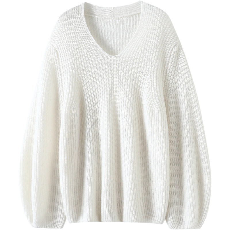 天猫基础中的灵魂!V领阔袖粗针山羊绒衫女纯羊绒毛衣针织衫宽松秋冬