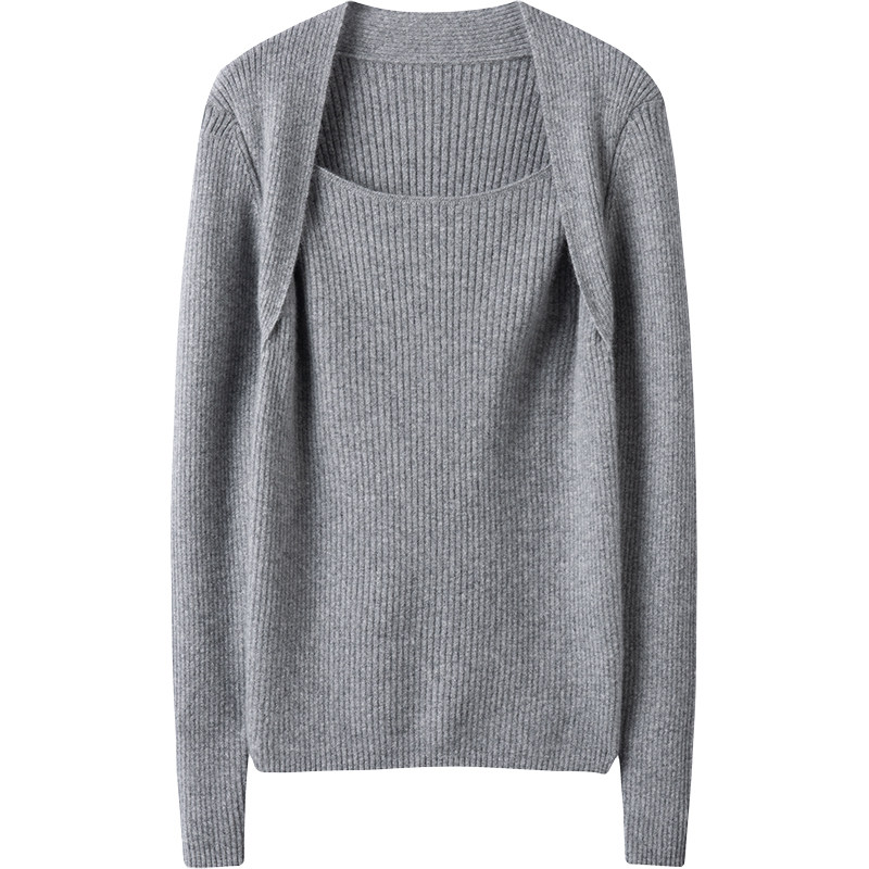 意大利设计师!舒适百搭纽扣坑条羊绒衫女纯羊绒毛衣针织打底衫
