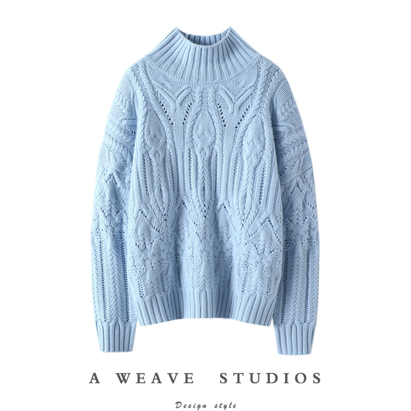天猫好款在回归!羊绒衫女镂空高领时尚纯色新款针织羊绒衫毛衣加厚