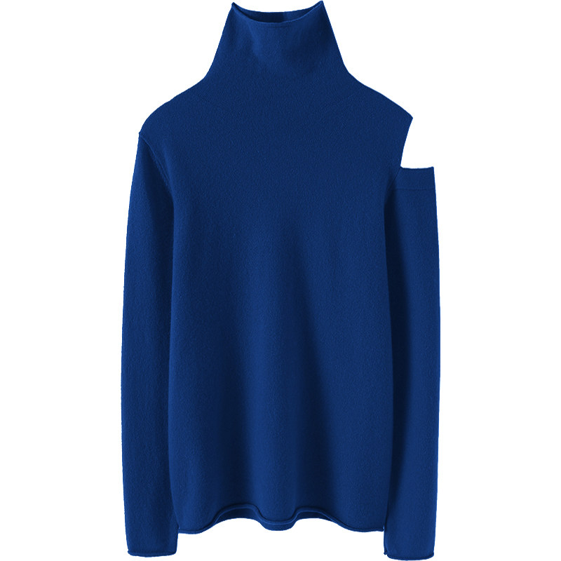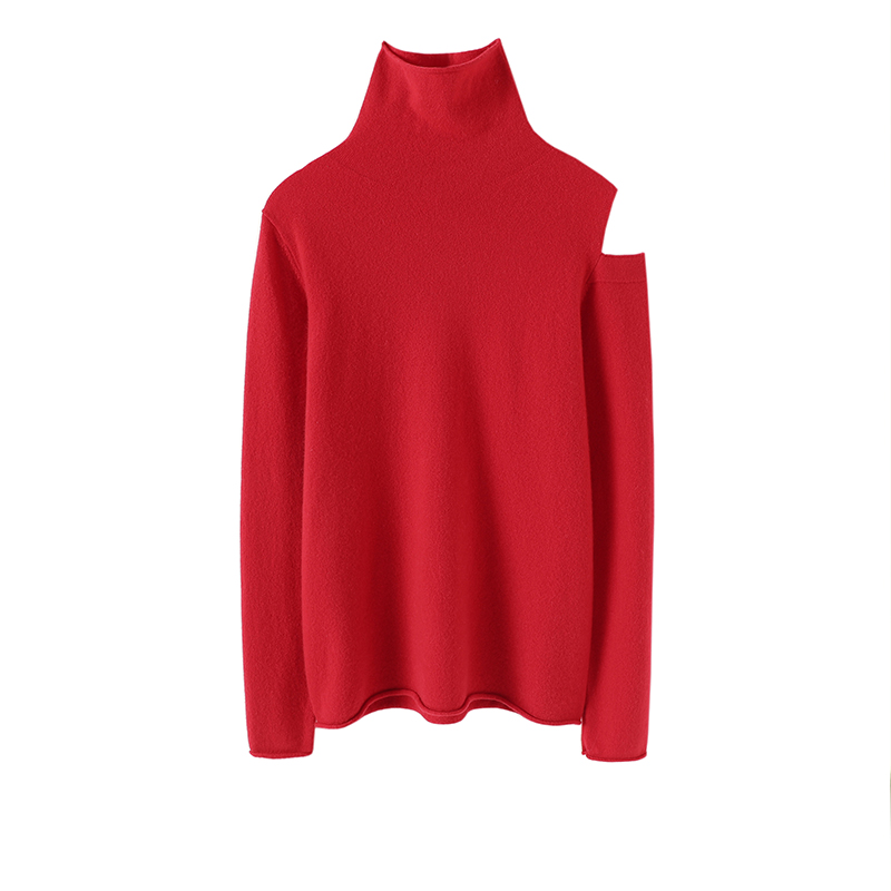 天猫气质杠杠的~单侧露肩高领羊绒衫女纯羊绒毛衣针织打底衫秋冬新款