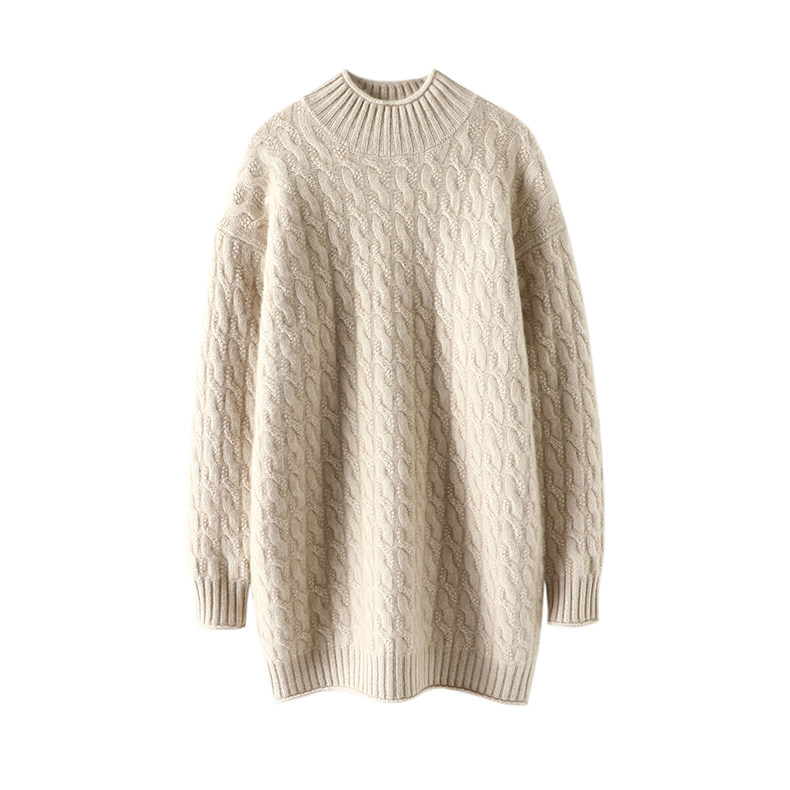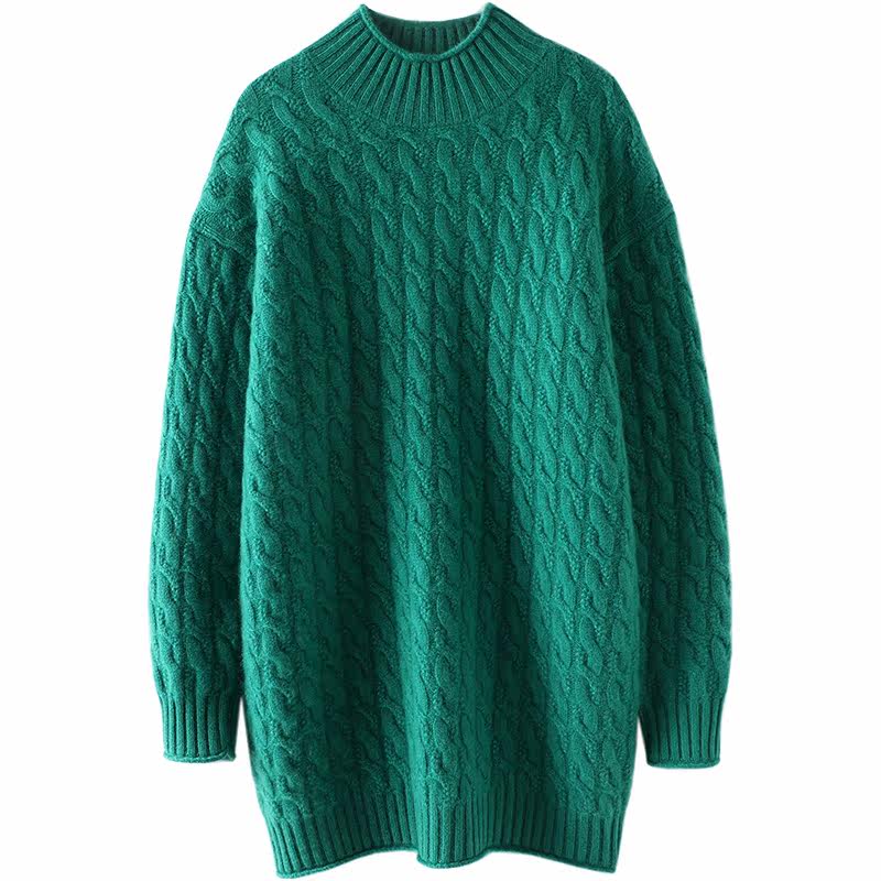 天猫启超午后花园!半高领100羊绒衫女中长款纯羊绒毛衣针织连衣裙