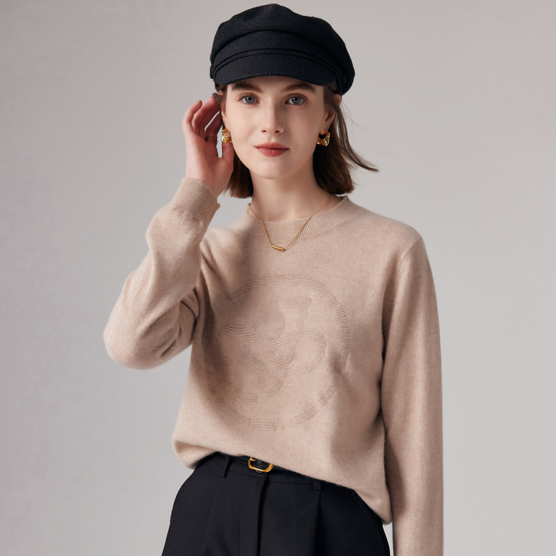 气质好吸睛~显瘦方领坑条羊绒衫女圆领纯羊绒毛衣针织打底衫秋冬