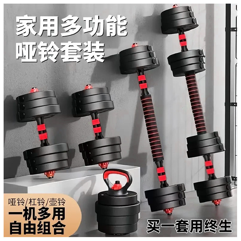 淘哑铃男士健身家用锻炼器材可调节重量青少年杠铃壶铃组合套装宿舍