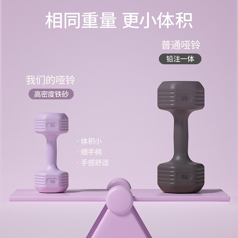 天猫哑铃女士健身家用女生瘦肚子力量锻炼2kg一对儿童健身器材小哑铃