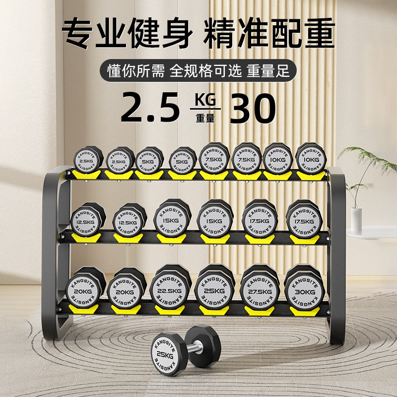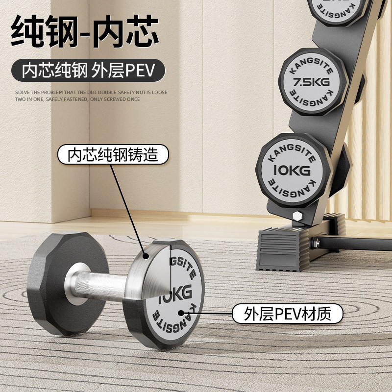 天猫康斯特纯钢哑铃男士健身家用5/10kg一对健身房专用包胶女商用亚铃