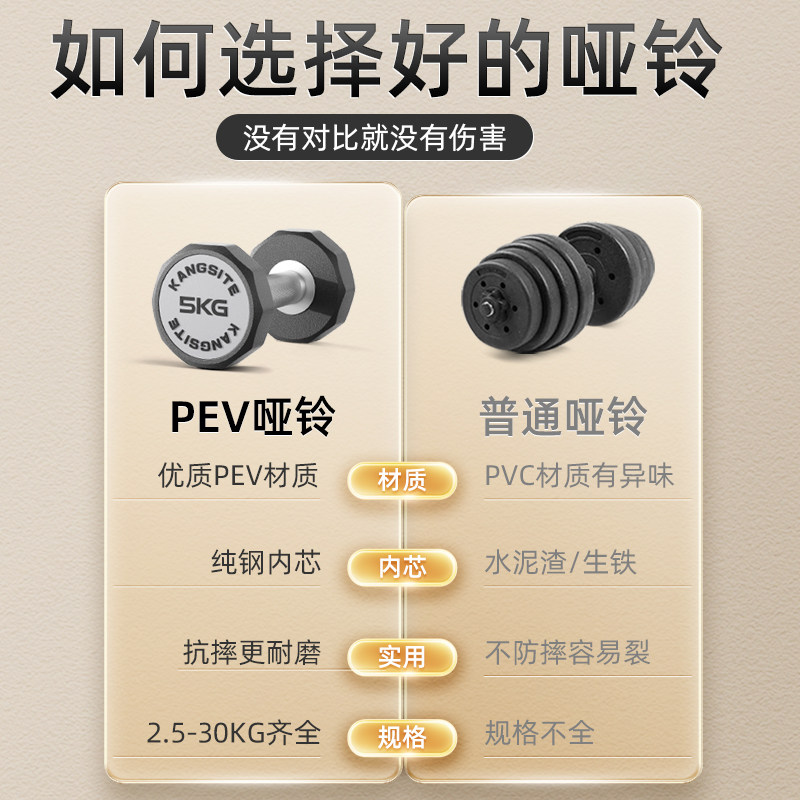 淘哑铃男士健身家用2kg3公斤4kg5公斤一对浸塑纯铁实心铸铁青少年