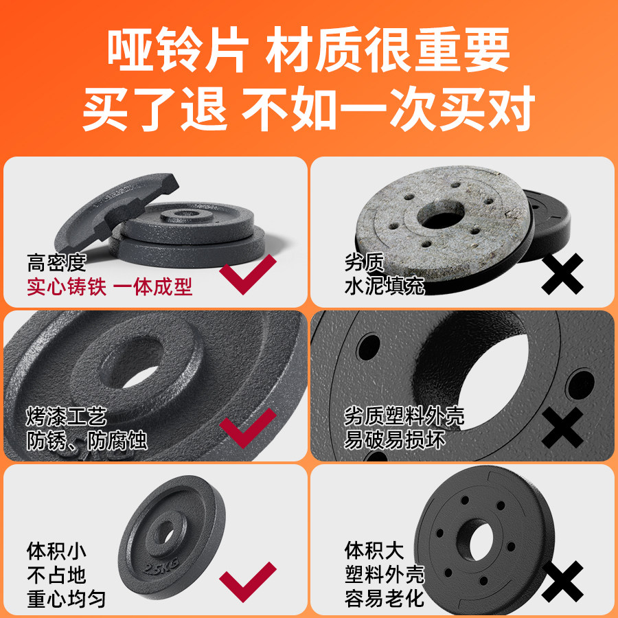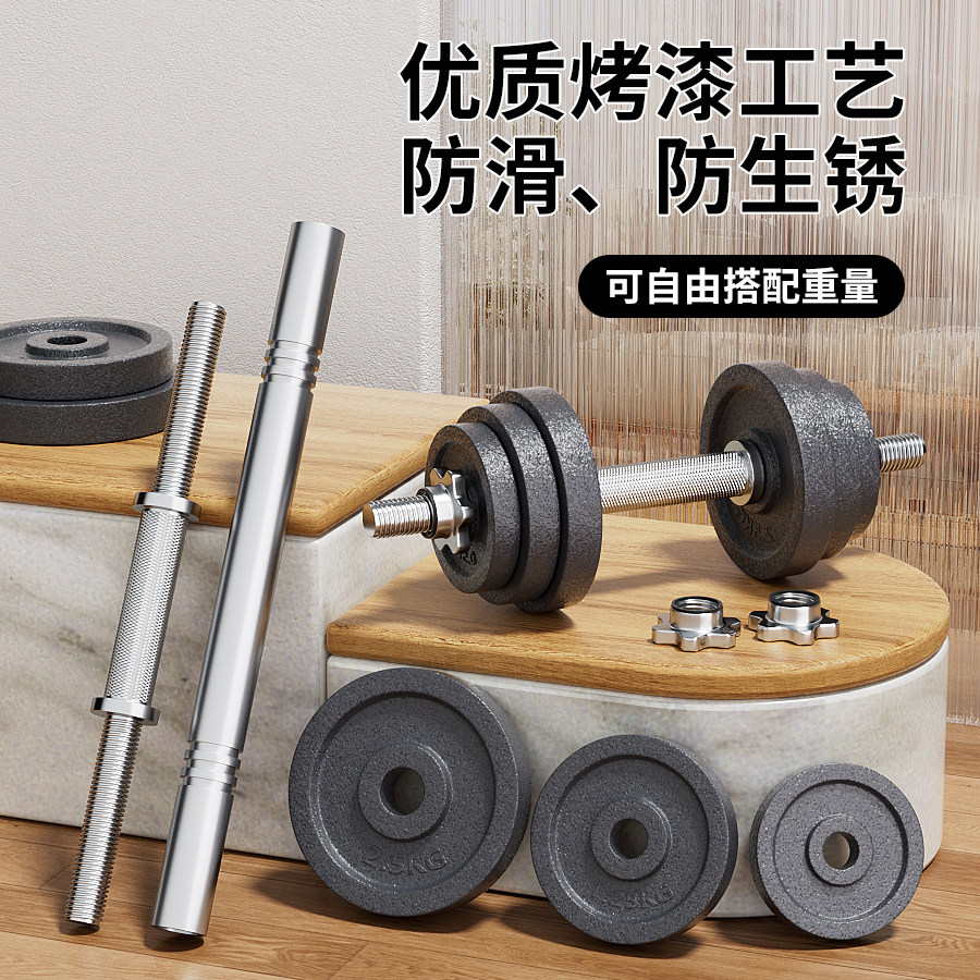 天猫纯铁烤漆哑铃男士健身家用可调节铸铁杠铃套装锻炼器材二合一对