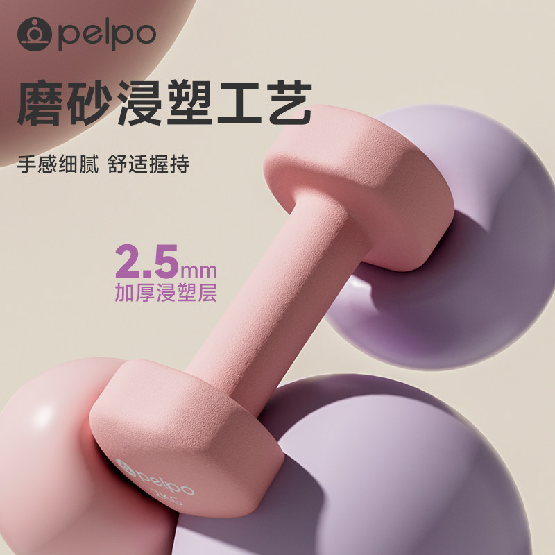 天猫派普小哑铃女士健身家用实心铸铁浸塑一对装训练器材手臂肌肉锻炼