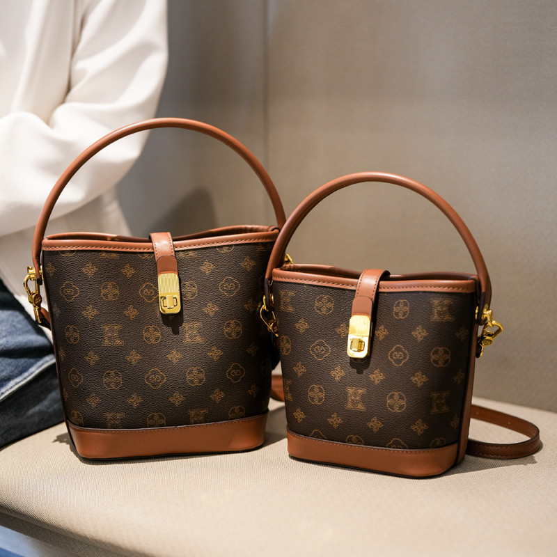 淘宝高级感包包女2025新款老花复古手提水桶包女士时尚百搭单肩斜挎包