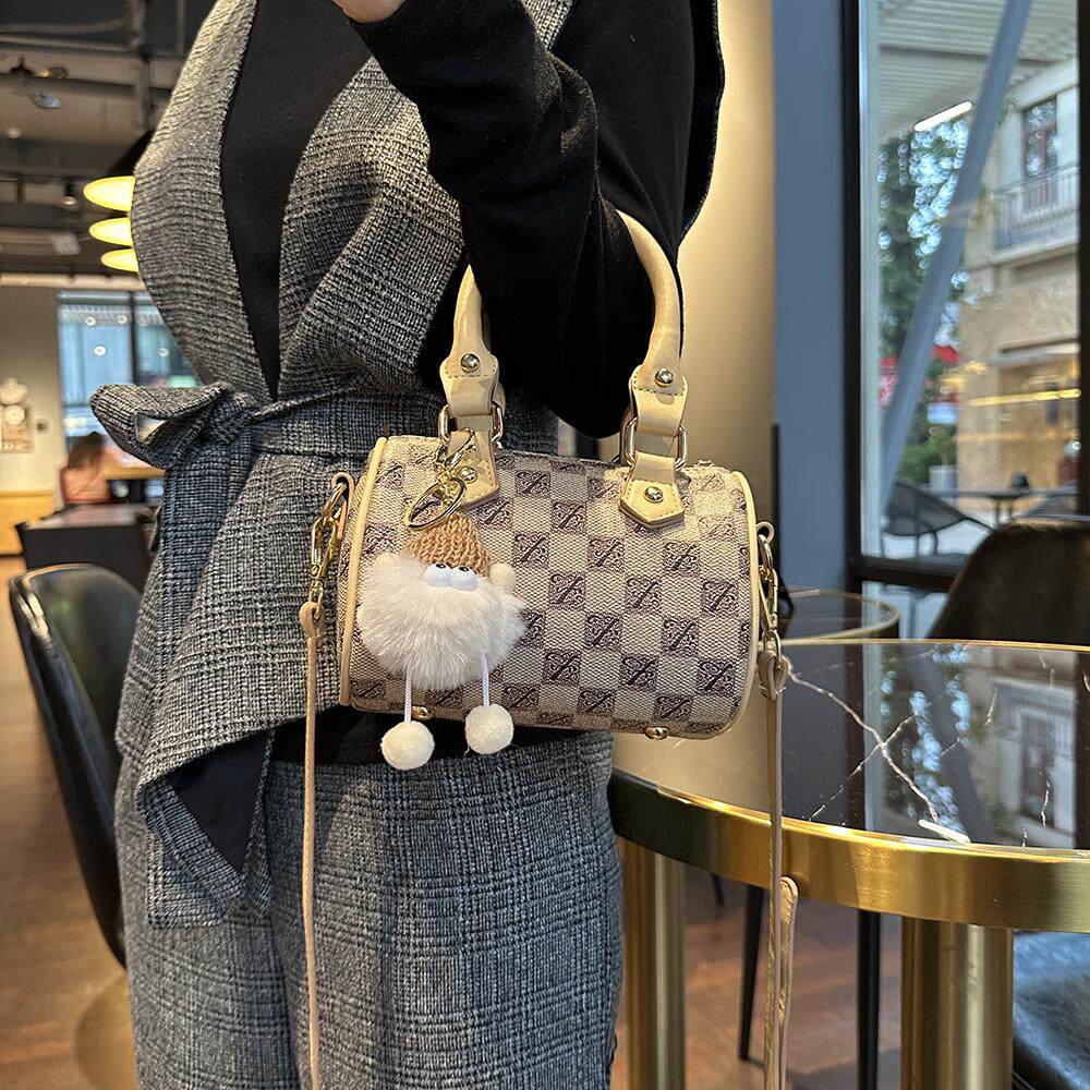 2025新款经典老花时尚百搭波士顿枕头包单肩手提包女士斜挎小包包