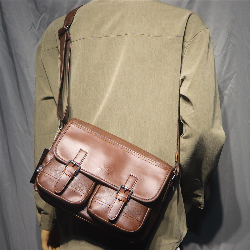 淘宝threebox潮牌男士邮差包 时尚青年休闲单肩包 日韩pu复古斜挎包