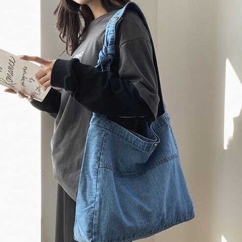 淘复古水洗牛仔布通勤包女大容量链条斜挎包休闲百搭单肩腋下托特包