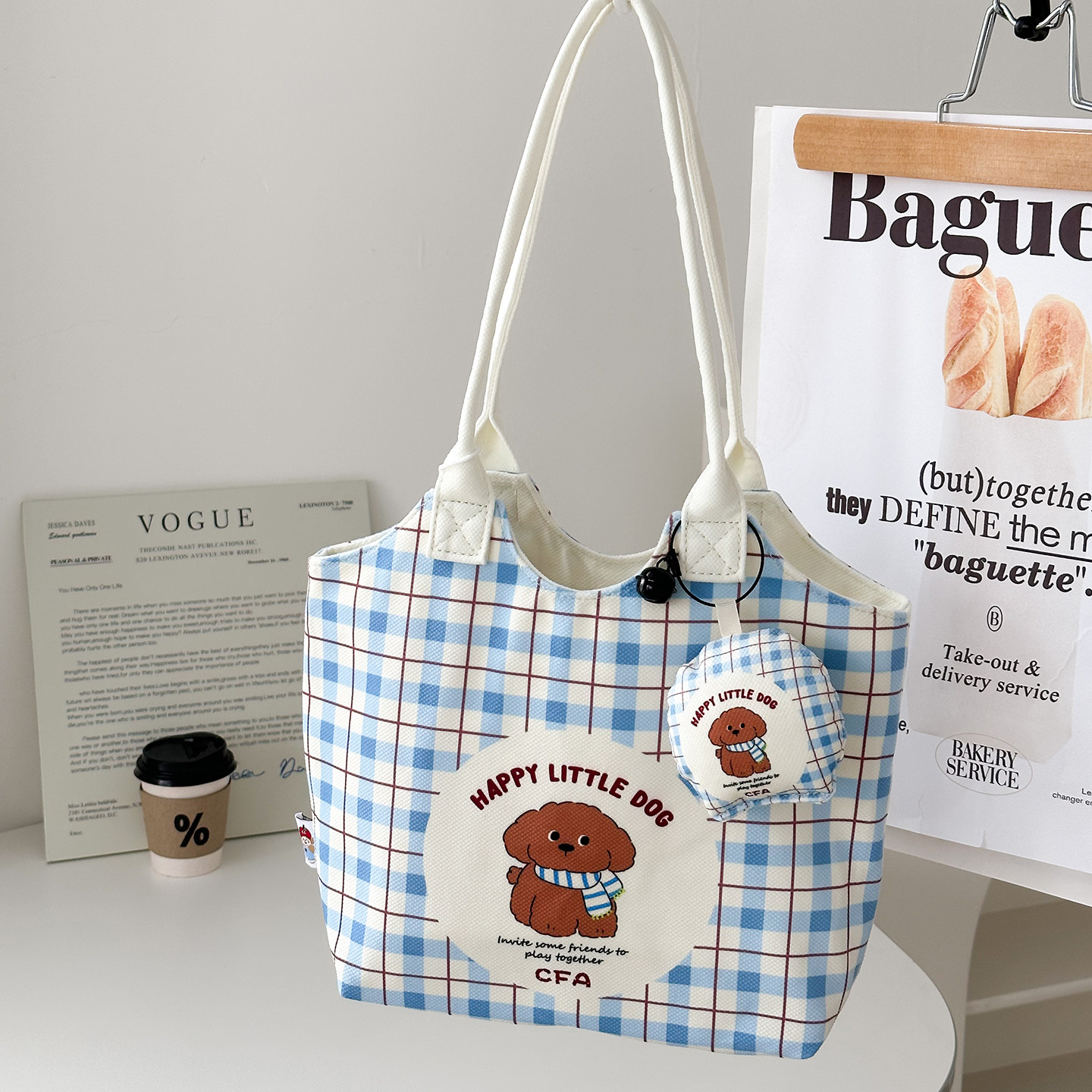 可爱格纹托特包女2025新款大容量学生上课手提包时尚百搭单肩包包
