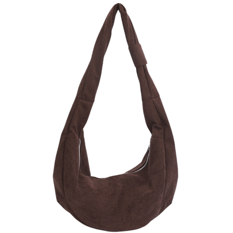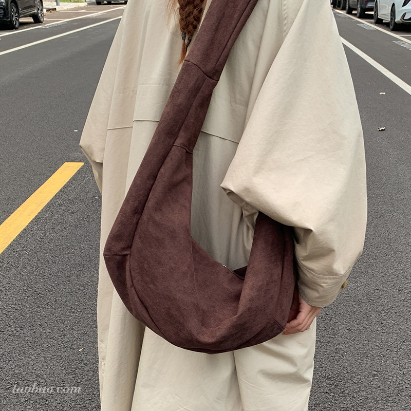 淘宝休闲复古麂皮绒包包女2025秋冬季新款通勤斜挎包松弛感单肩牛角包