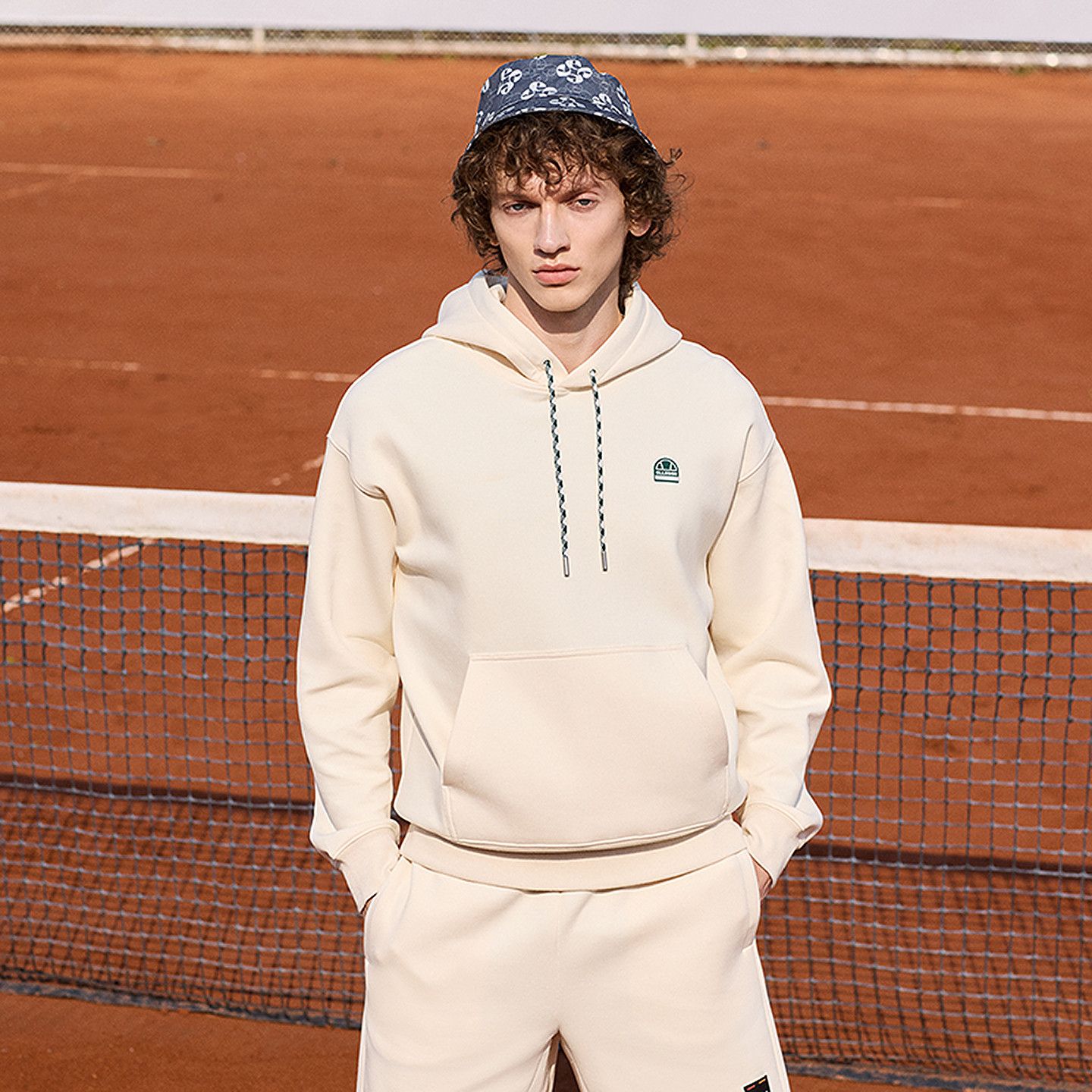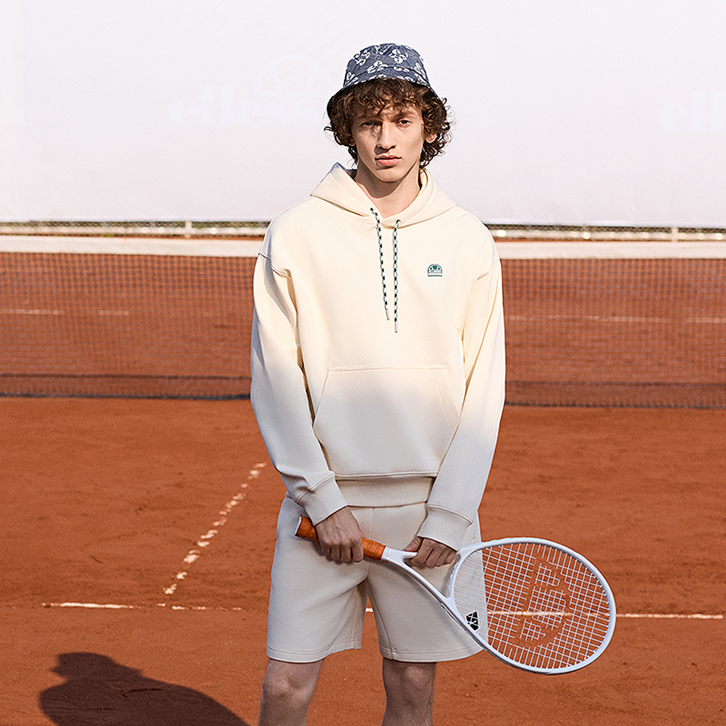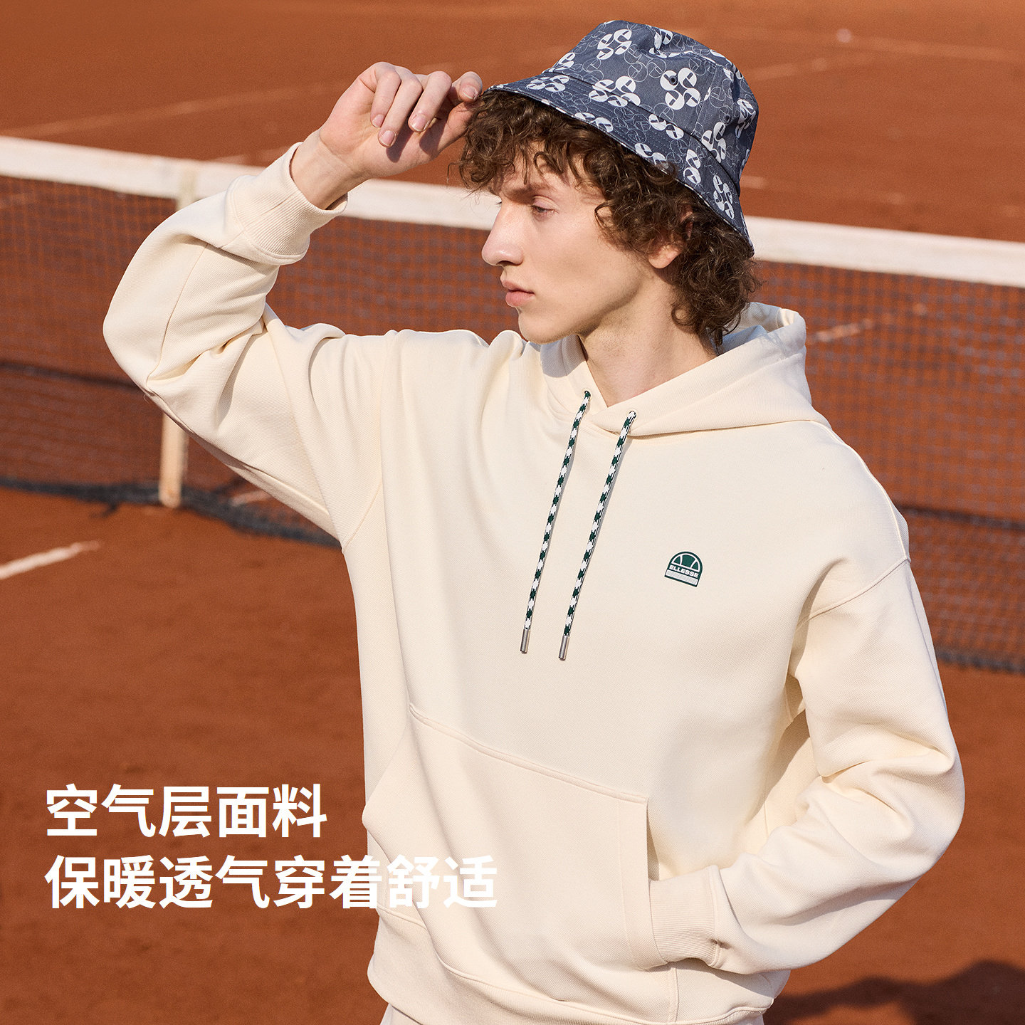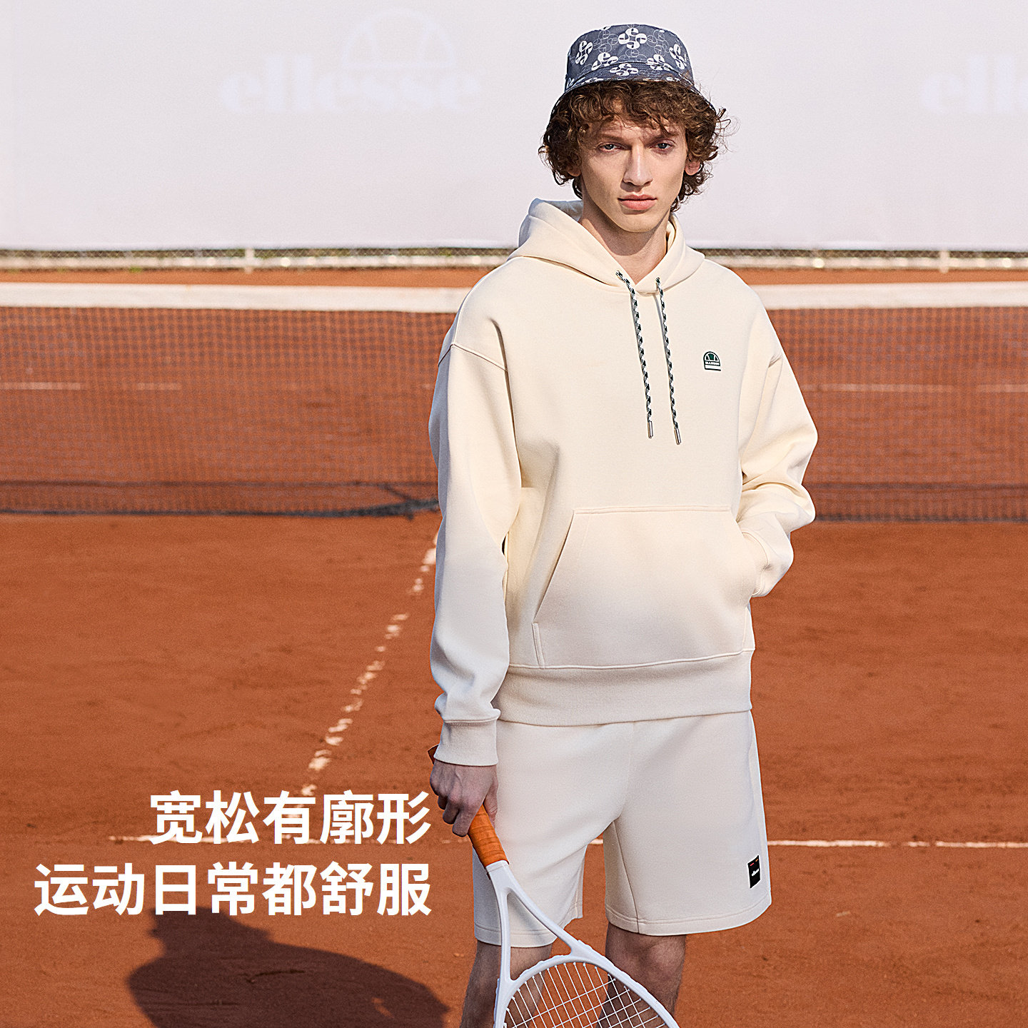天猫【明星同款】ellesse小贝壳25秋冬老钱风连帽卫衣短裤套装男女款