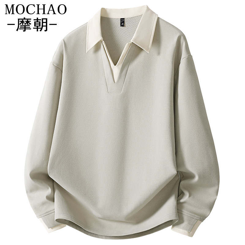 淘悟空有货复古潮牌高级感撞色POLO领卫衣男女宽松情侣百搭套头上衣