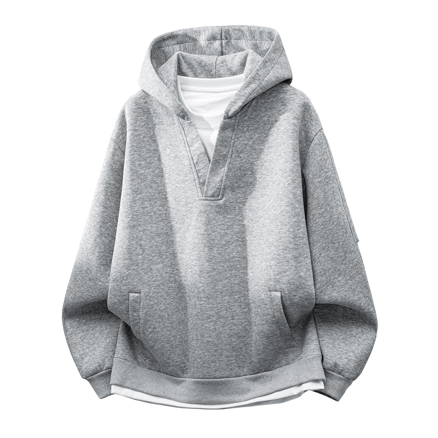 JHYQ美式400G无logo基础款连帽加绒卫衣男秋冬潮牌简约百搭帽衫