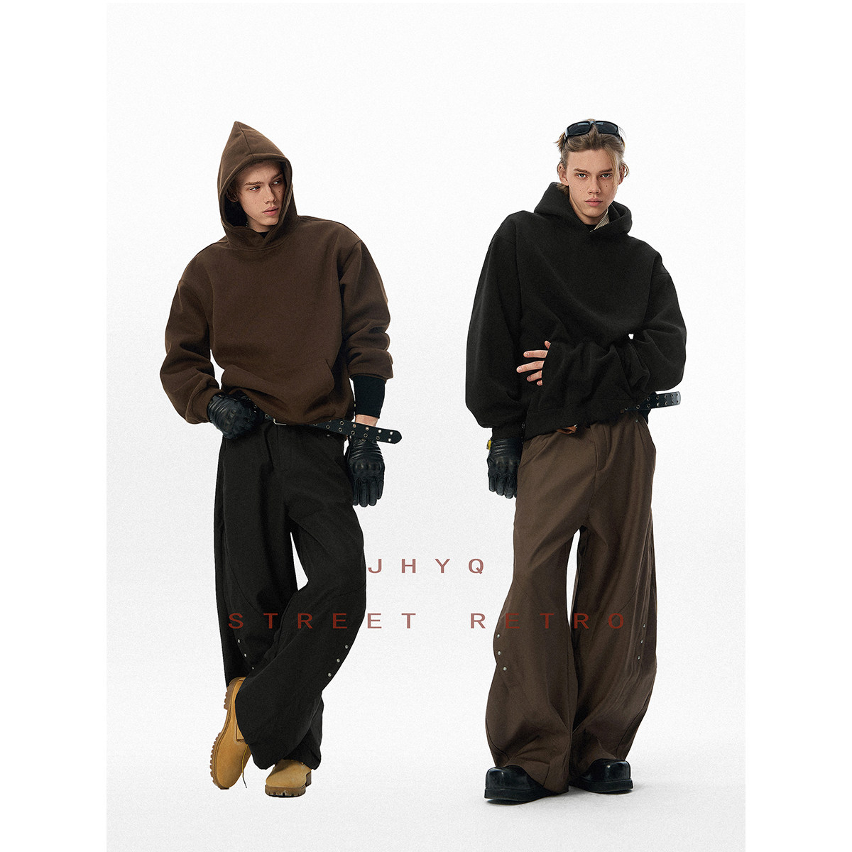 天猫JHYQ美式400G无logo基础款连帽加绒卫衣男秋冬潮牌简约百搭帽衫