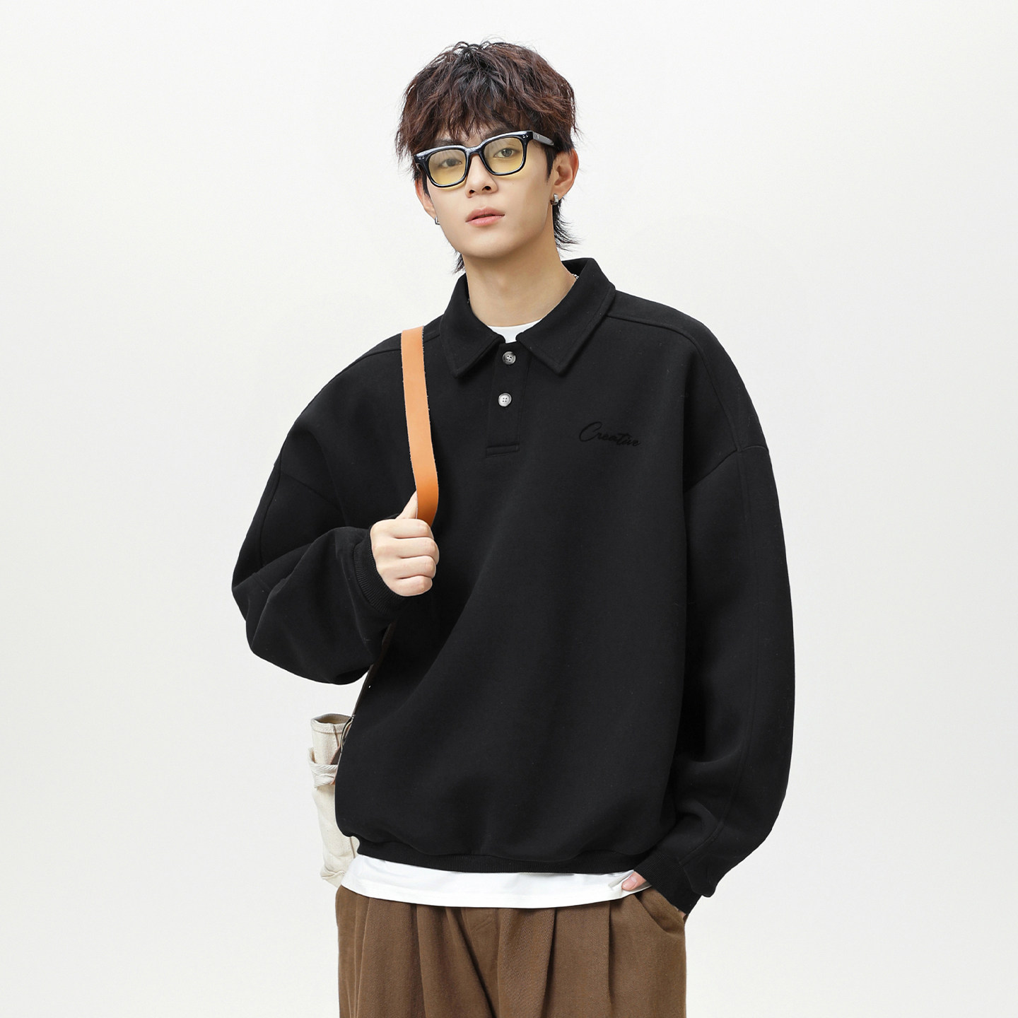 悟空有货复古潮牌高级感撞色POLO领卫衣男女宽松情侣百搭套头上衣