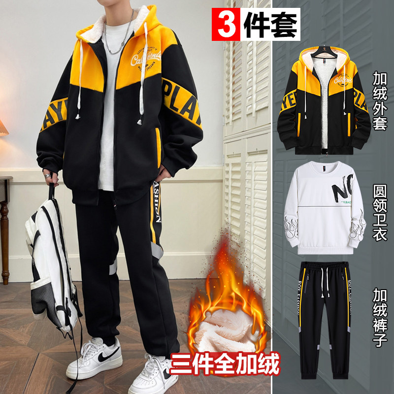 淘真维斯加绒运动套装男士加厚卫衣男款2025新款冬季青少年直筒裤男
