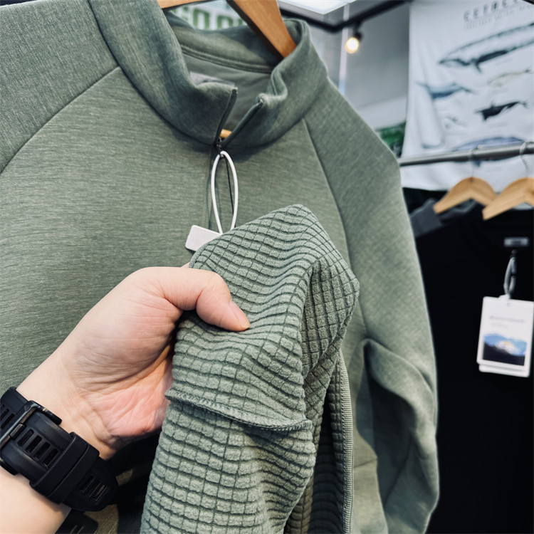 淘宝lulu平替!男女同款动态保暖立体方格绒户外卫衣套头半拉链抓绒衣
