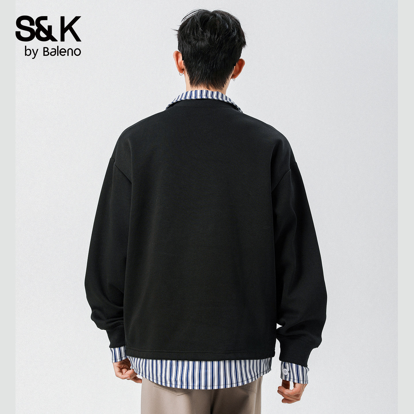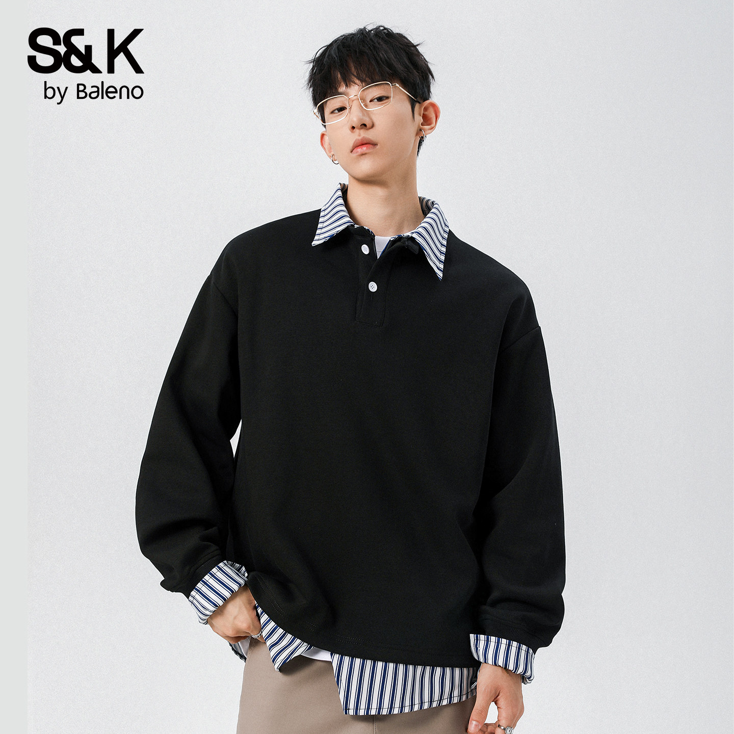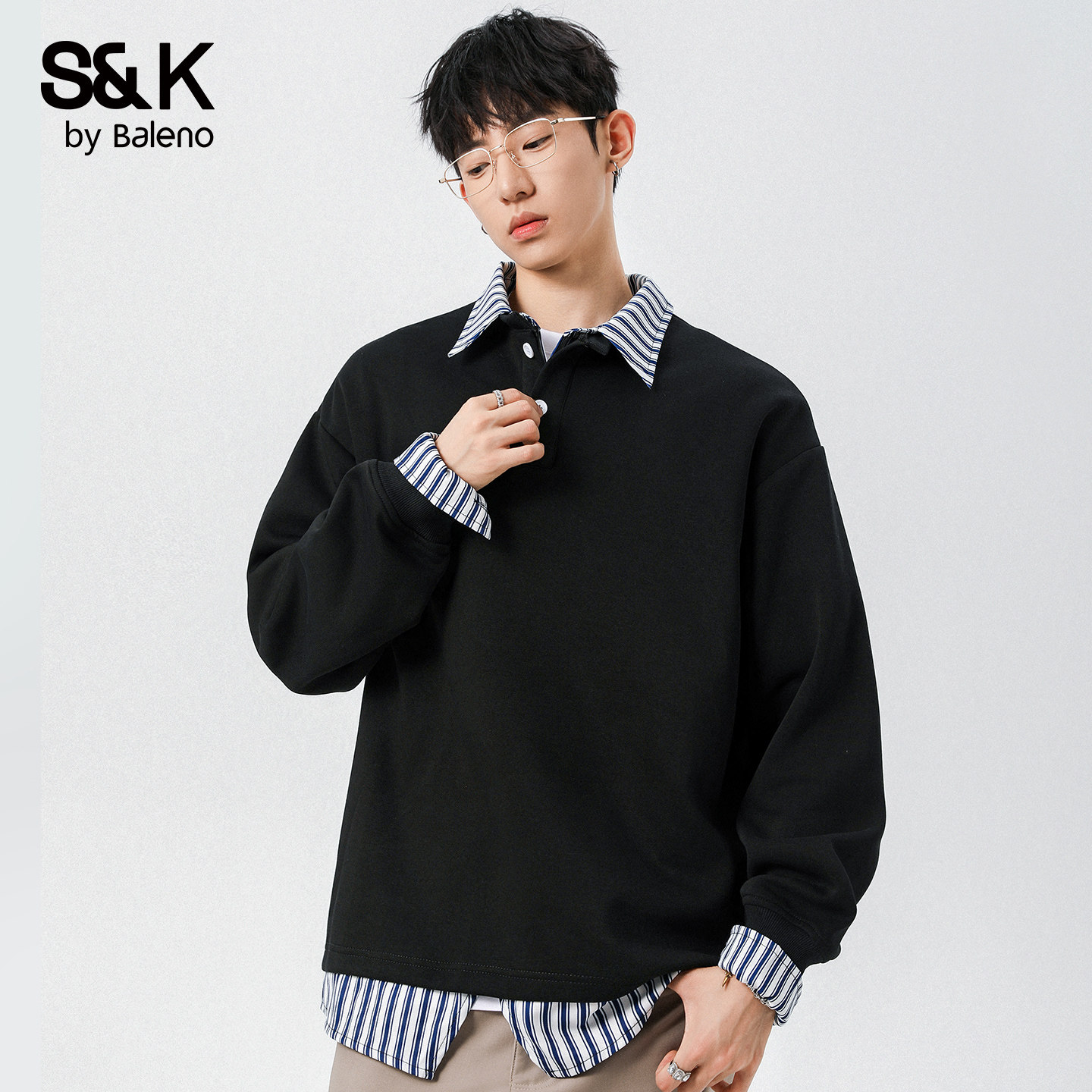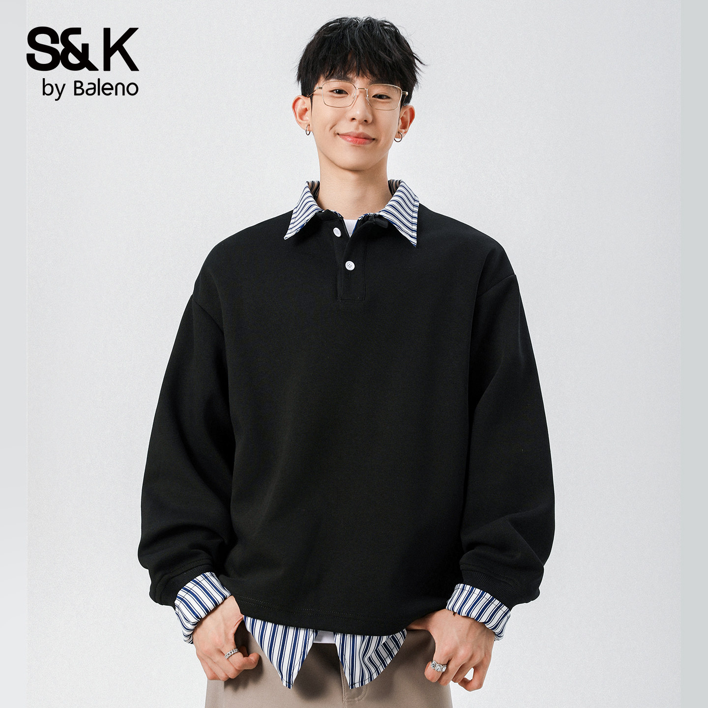 天猫班尼路SK翻领卫衣男假两件套头打底衫2025秋季新款宽松休闲上衣MS