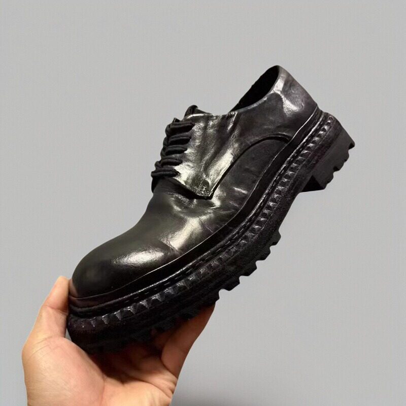 淘宝水洗马皮大头德比鞋男鞋子真皮鞋底手工休闲皮鞋耐磨厚底增高板鞋