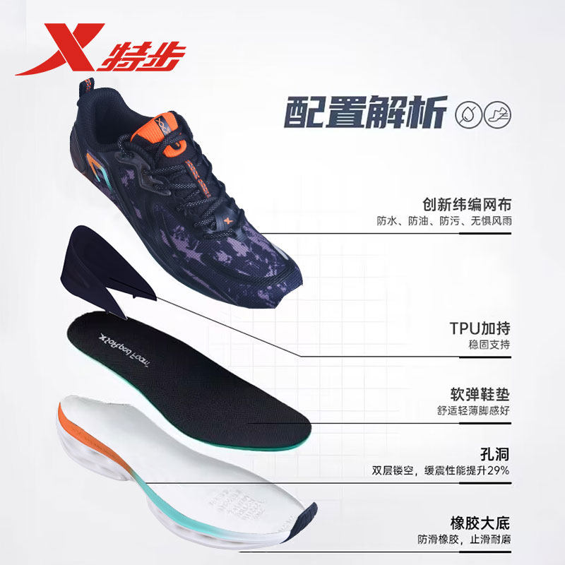 天猫特步男鞋减震旋9.0|跑步鞋男士冬季新款防水运动鞋男正品轻便跑鞋