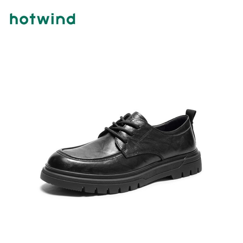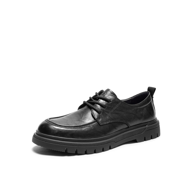 天猫热风男鞋春季新款男士时尚圆头系带休闲鞋百搭纯色英伦皮鞋