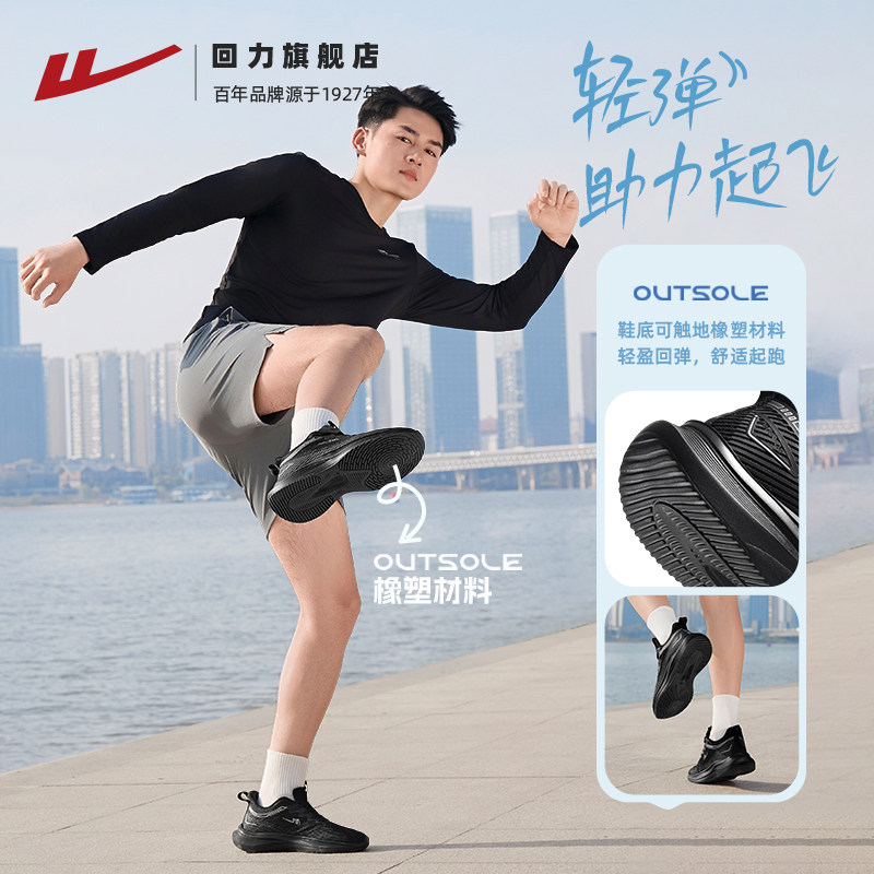 回力男鞋运动鞋男款2025新款秋冬皮面潮鞋子男士软底黑色跑步鞋男