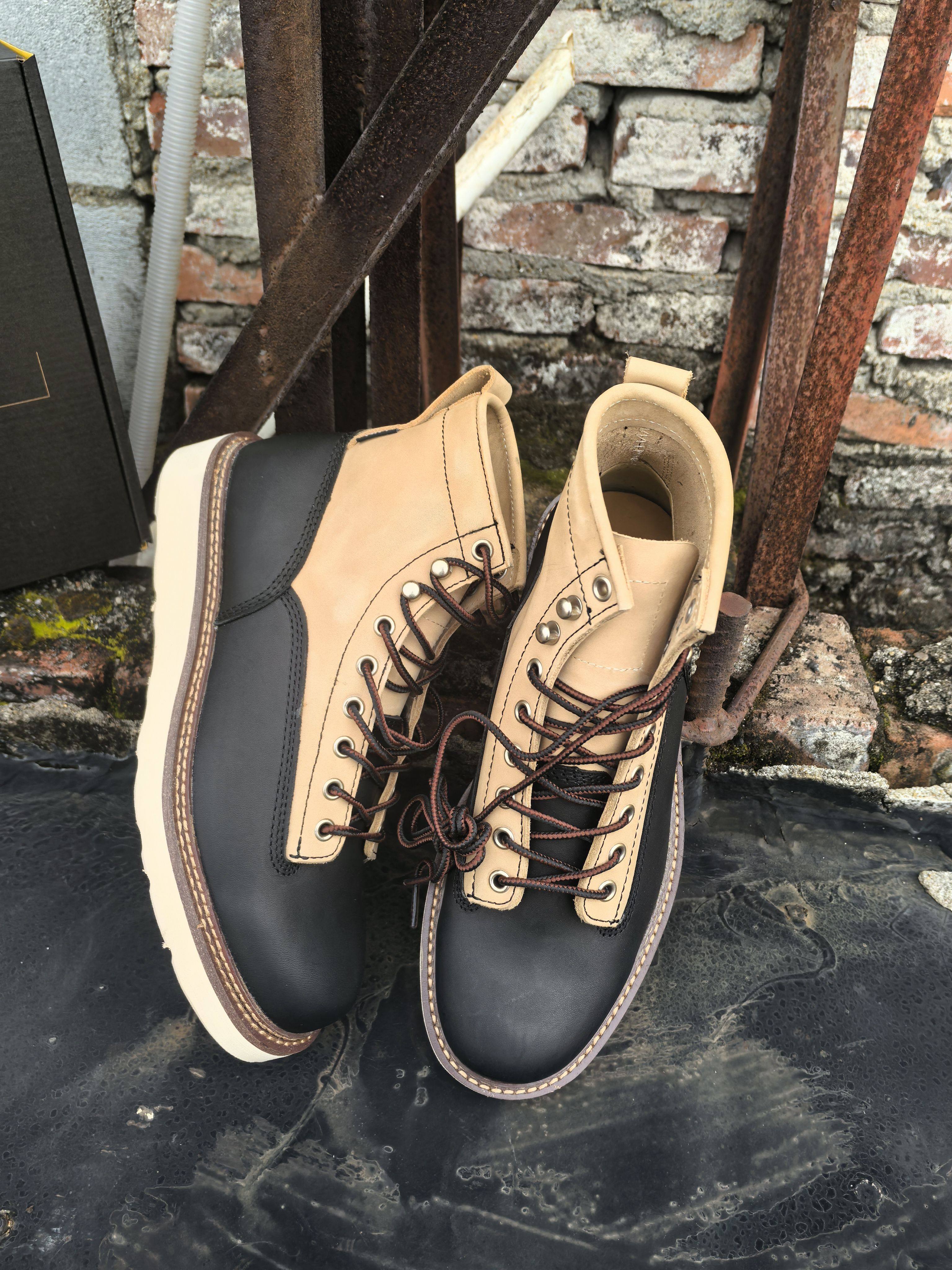 淘宝阿美咔叽 轻便工装靴真皮复古短靴男拼色高帮马丁靴40-49大码男鞋
